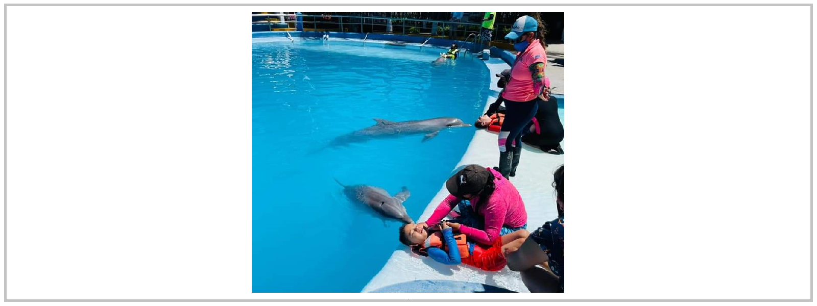 “Hemos vuelto a retomar las delfinoterapias, tras el semáforo amarillo, con todos los protocolos de salud, como son el llevar grupos reducidos de pacientes para que reciban terapia, uso de gel antibacterial, cubrebocas para acompañantes y sana distancia social”, reitero Santiago Pacheco.