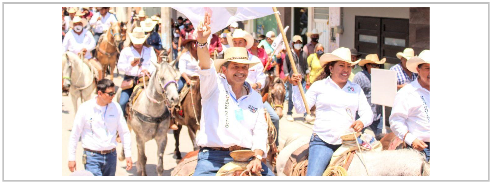 En ambos eventos estuvieron presentes: Gabriela Nales de Pedroza, esposa de Octavio Pedroza; Alejandro Leal Tovías, coordinador de enlace político de la campaña; Edmundo Torres Cano, candidato a diputado local por el XI distrito; Óscar Bautista, candidato a diputado federal por el III distrito y Verónica Rodríguez, candidata a diputada local plurinominal.