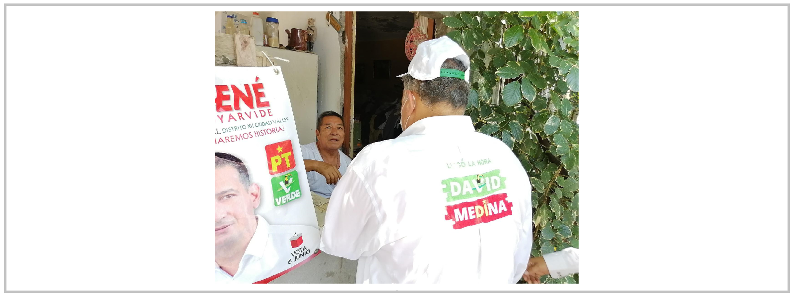 Acompañado por vecinos del sector en una caminata y visita casa por casa, el abanderado de los partidos Verde Ecologista y del Trabajo, dijo conocer muy bien las necesidades del sector, siendo la rehabilitación de sus calles y el área verde con la que cuentan las principales peticiones.