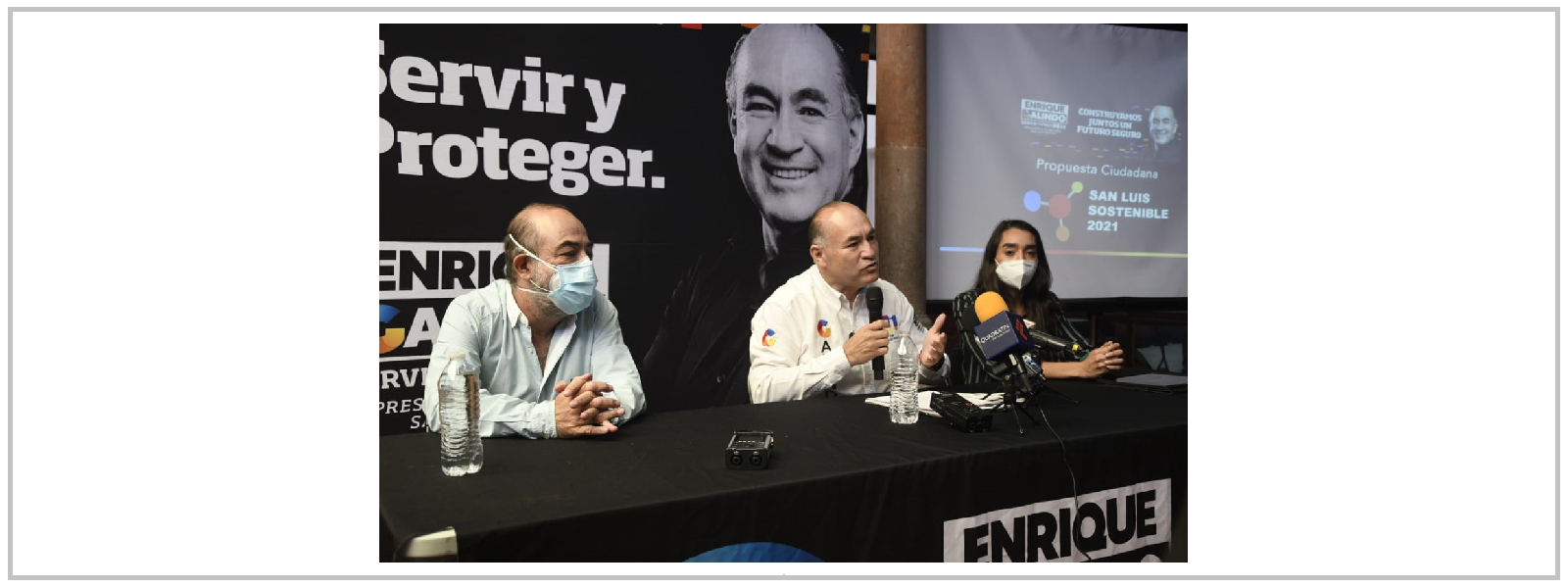 Acompañado por el Dr. Fernando Díaz Barriga, experto en Evaluación de Riesgos en salud y Desarrollo Social (con maestría y doctorado en Biología celular por el centro de investigación y estudios avanzados del IPN); y  Marianela Villasuso Villanueva, licenciada en Ciencias Ambientales y Coordinadora de la estrategia San Luis Sostenible, el abanderado por los partidos PRI-PAN-PRC-PCP, enfatizó que para la construcción de esta agenda, se llevó a cabo un diagnóstico con información de fuentes internacionales, nacionales y locales; así como la participación dela sociedad en general, relacionada con indicadores de desarrollo social, económico y ambiental con el objetivo de ofrecer mejores soluciones adecuadas a las problemáticas actuales con un enfoque sostenible.