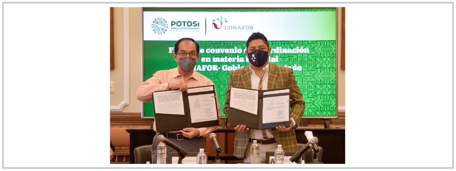 El Gobernador Ricardo Gallardo Cardona se reunió con el director de la Comisión Nacional Forestal (Conafor) Luis Meneses Murillo, para impulsar y llevar a cabo proyectos de suma relevancia ambiental tanto en la capital como en el resto de las regiones de la Entidad, logrando obtener recursos por 59 millones de pesos. En el encuentro se planteó reforestar la Sierra de San Miguelito, proteger la Huasteca Potosina y fortalecer el desarrollo sustentable del Parque Tangamanga Uno.