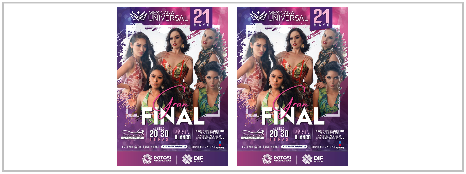 La responsable de dirigir la loable institución, exhortó a toda la ciudadanía a sensibilizarse al beneficio altruista que representa la realización de este evento nacional en la Entidad, e invitó a adquirir las entradas para la etapa final que se llevará a cabo el 21 de mayo en el Centro de Convenciones de San Luis Potosí, con un costo de 300, 450 y 650 pesos, mismas que se pueden comprar a través del sistema de venta Ticketmania.