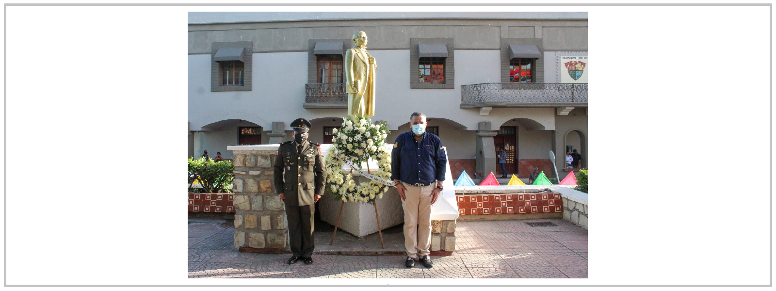 Asimismo, en el marco de la conmemoración del CL Aniversario Luctuoso del Licenciado Benito Juárez García, se depositó una ofrenda floral y se montó guardia de honor en su memoria, llevándose a cabo también el izamiento de la nueva bandera monumental en el asta de la plaza principal.