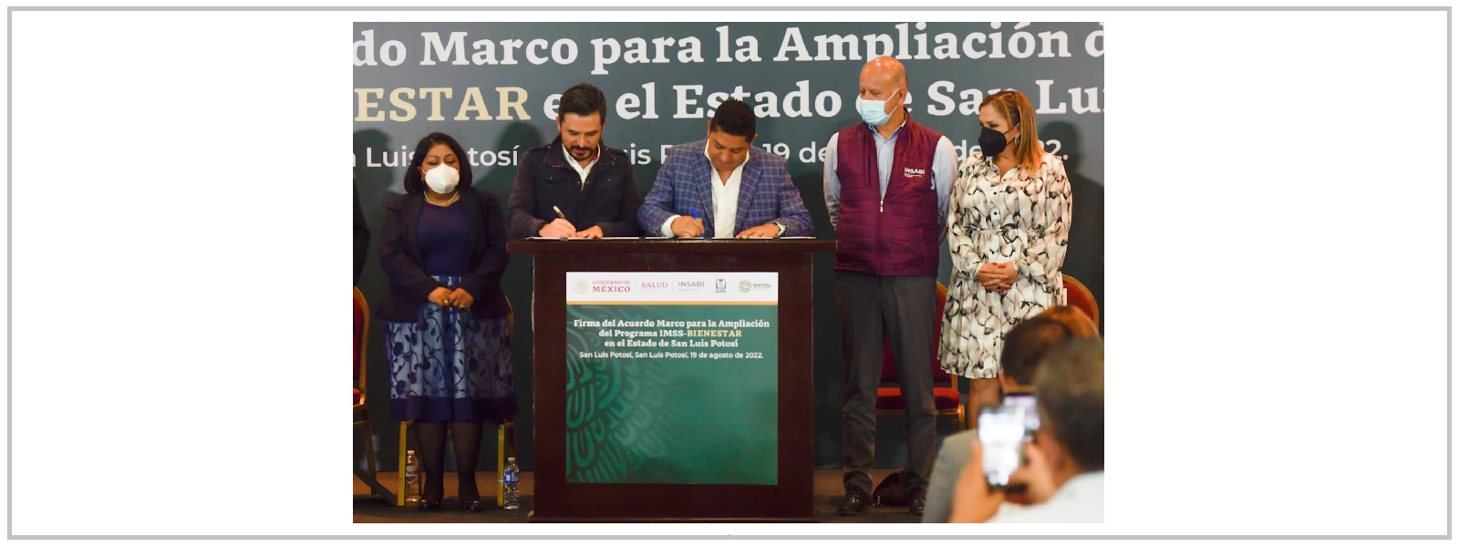 Con el compromiso de garantizar la atención médica de calidad, digna y gratuita para las y los potosinos sin que nadie se quede atrás, el Gobierno de San Luis Potosí que encabeza Ricardo Gallardo Cardona y el Gobierno de México a través del director general del Instituto de Salud para el Bienestar (Insabi), Juan Antonio Ferrer Aguilar y el director general del Instituto Mexicano del Seguro Social (IMSS), Zoé Robledo, firmaron el “Acuerdo Marco para la Ampliación del Programa IMSS-Bienestar en el Estado”.