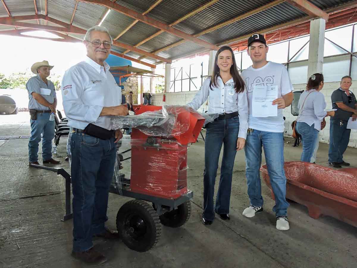 Los equipos y materiales para las y los productores son: paquetes de láminas, bebederos y comederos, calidad de uso rudo para 35 familias, además de 25 molinos de forraje y tres mil costales de fertilizante para 300 familias que cultivan caña, que fueron afectadas por el prolongado estiaje.